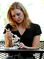 Wearing a tight black shirt and a pair of tight jeans Brianna looks good enough to eat in this gallery. The shirt is cut in a very flattering way and hugs her slim and sexy body nicely, leaving you with a great babe to check out.